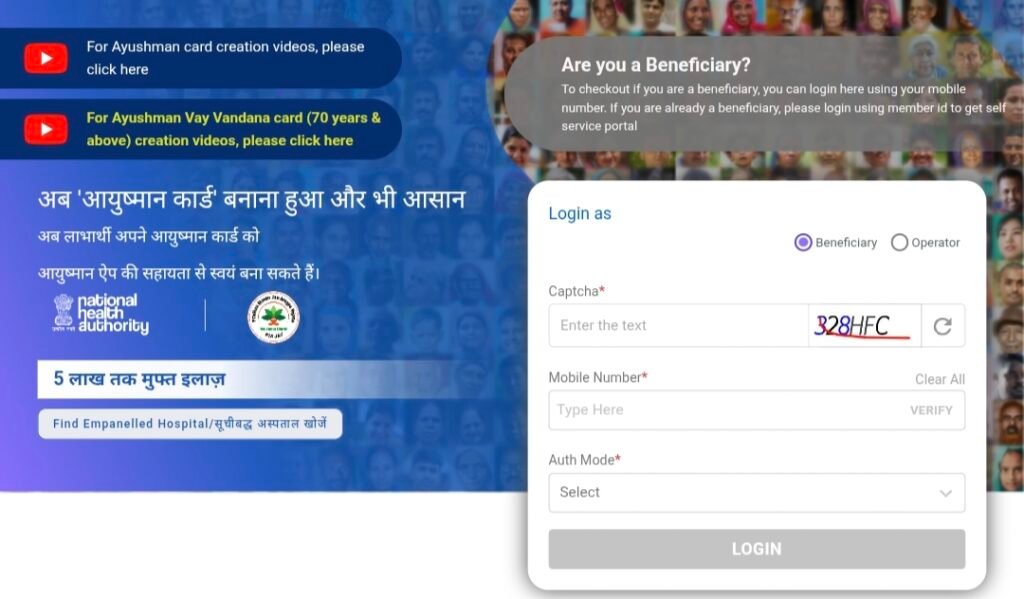 - सबसे पहले आयुष्मान भारत की ऑफिशियल वेबसाइट beneficiary.nha.gov.in पर जाएं।