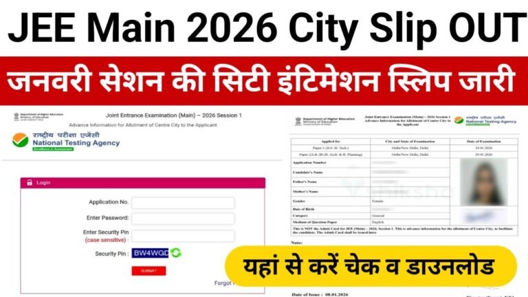 JEE Main 2026 City Slip OUT: नेशनल टेस्टिंग एजेंसी (NTA) ने JEE Main 2026 जनवरी सेशन के लिए बड़ी अपडेट …
