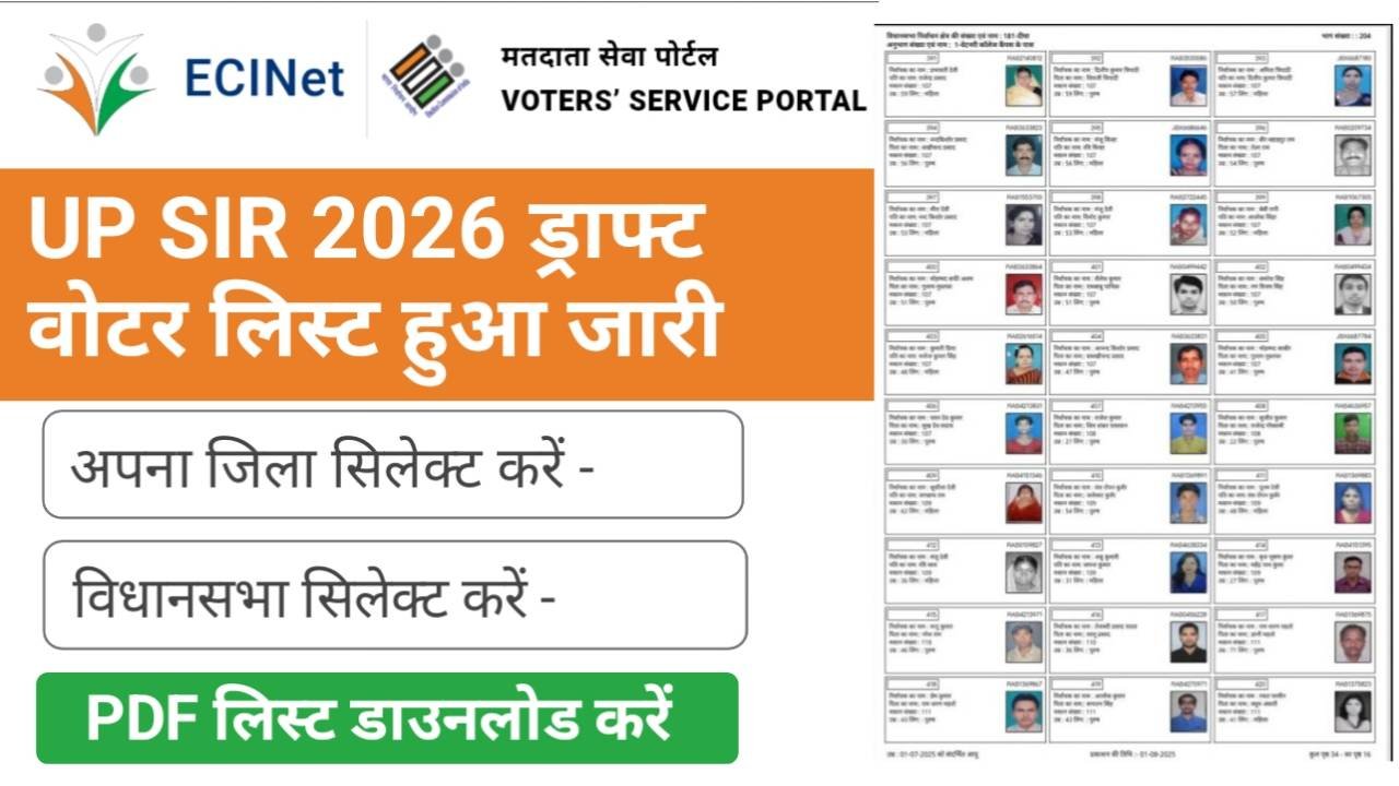UP SIR Voter List 2026 PDF: यूपी SIR वोटर लिस्ट को लेकर उत्तर प्रदेश के मतदाताओं के लिए बड़ी खबर सामने आई है। भारत निर्वाचन आयोग (ECI) ने Special Intensive Revision (SIR) 2026 प्रक्रिया के तहत यूपी की ड्राफ्ट मतदाता सूची जारी कर दी है। अब राज्य के सभी मतदाता यह आसानी से ऑनलाइन चेक कर सकते हैं कि उनका नाम वोटर लिस्ट में शामिल है या किसी कारण से कट गया है।